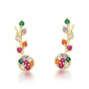 Brinco Earcuff Flor Banhado a Ouro 18k Colorida -