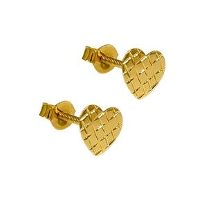Brinco de Ouro Coração Pequeno Feminino é todo feito com Ouro 10k 416Ouro amarelo1 peçaPeso de 0,5 gramasAcabamento PolidoPeça em ouro maciçoTamanho 6 mm x 6 mmItens InclusosPar de Brincos de Ouro Coração Pequeno FemininoSaquinho AveludadoNota Fiscal integral no nome do compradorProduto com garantia eterna do ouro 10k