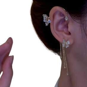 Não perca a oportunidade de adicionar esse toque de luxo ao seu visual. Adquira agora mesmo o Brinco Estilo EarCuff Dourado Flor Borboleta Strass Luxo e destaque-se com muito estilo e elegância!