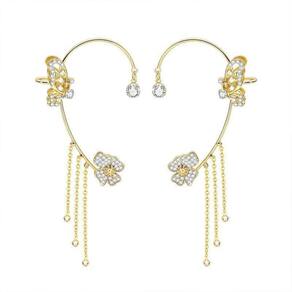 Brinco Estilo EarCuff Dourado Flor Borboleta Strass Luxo