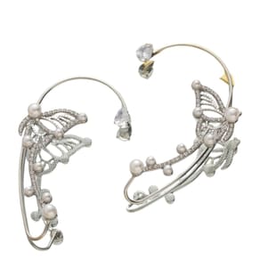 Descubra o brinco estilo EarCuff prateado com detalhes de borboleta e strass, perfeito para adicionar um toque de luxo ao seu visual feminino.