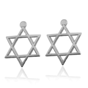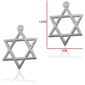 Brinco estrela de davi pendurada em prata 925 Conhecida também como estrela de 6 pontas e escudo de davi, a estrela de davi simboliza o judaísmo.Entre seus significados podemos destacar a união dos opostos, como a ligação entre o céu e a terra e a união do masculino e do feminino.Se você é judeu ou gosta do símbolo, esse lindo par de brincos em prata 925 é indicado para você. Uma peça delicada e sofisticada que dará um charme a mais em seu look. Anúncio referente ao par de brincos. Tamanho do brinco: 1,2cm x 1cm Marca: Perucci Joias