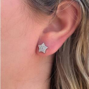 Brinco Estrela Cravejados Com Zircônias Prata 925 Cristal -