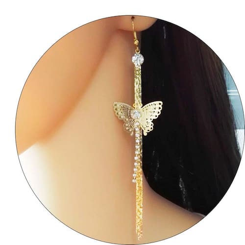 Realce sua beleza com o charme e a leveza do Brinco Feminino Longo com Borboleta e Franja de Strass. Com design delicado e sofisticado, esse acessório é ideal para quem busca um visual elegante com um toque moderno.
