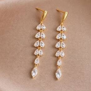 Brinco Feminino Dourado Gota Cristal Longo Elegante é a escolha ideal para quem deseja um visual sofisticado e cheio de brilho. Com delicadas pedras em formato de gota e acabamento dourado, esse acessório traz um toque de luxo e glamour ao look. Seu design alongado valoriza o rosto e adiciona movimento, sendo perfeito para festas, casamentos e eventos especiais. Um brinco clássico e versátil que combina com diferentes estilos e é também uma excelente opção de presente feminino elegante.