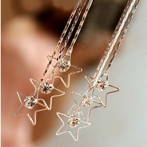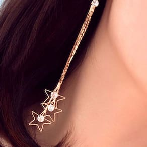 Compre agora Brinco Feminino Franja Longo Estrelas Strass Brilho Festas Dourado