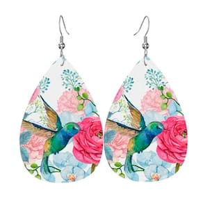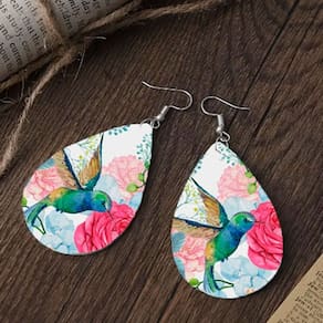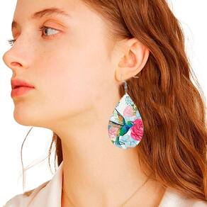 Brinco Feminino Gota Beija Flor Couro Pendurados Moda
