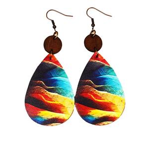 Brinco Feminino Gota Colorido Couro Pendurados Moda