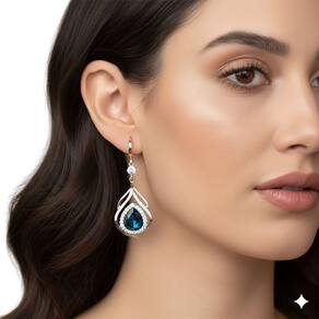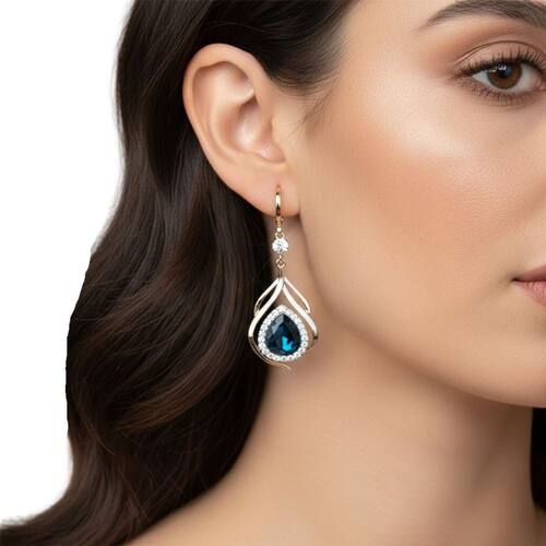 Destaque sua feminilidade com este par de brincos que exala elegância e brilho profundo. O design apresenta um cristal facetado em tom azul safira, abraçado por uma moldura vazada cravejada com microzircônias cristalinas que captam a luz de forma espetacular.