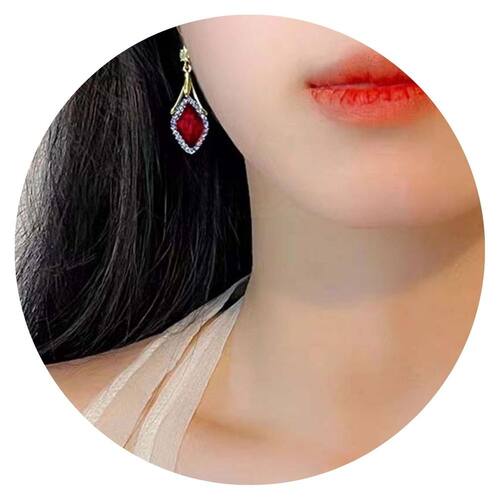 Brinco Feminino Par Losango Strass Luxo Tendência Vermelha