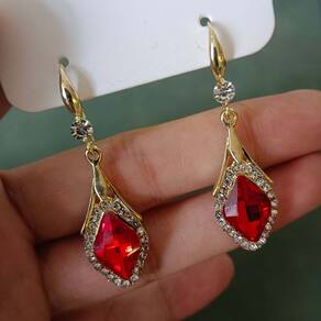 Compre agora Brinco Feminino Par Losango Strass Luxo Tendência Vermelha
