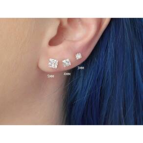 Brinco Feminino Quadrado Pedra 5mm Prata 925