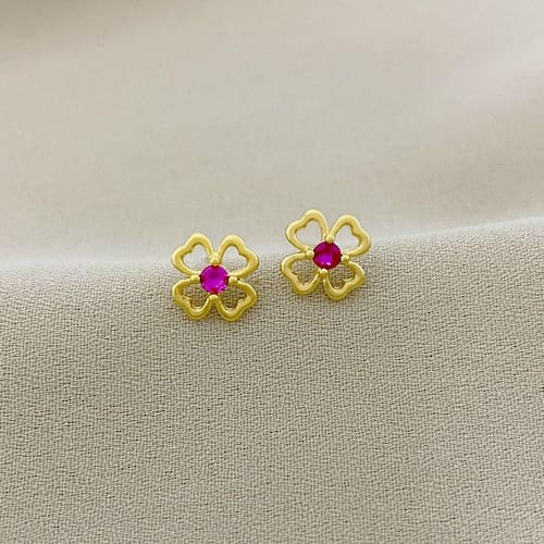 Brinco Flor com Ponto de Luz em Zircônia Banhado a Ouro