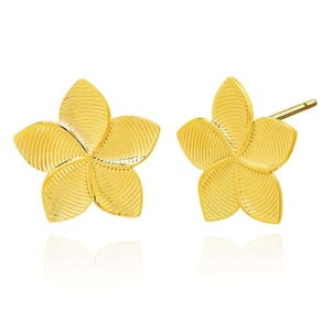 Brinco elegante em formato de flor, confeccionado em liga metálica com banho dourado. O design detalhado das pétalas com textura suave traz um toque de sofisticação e charme. Ideal para compor looks refinados em eventos, festas ou ocasiões especiais.