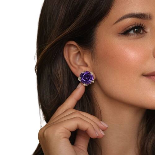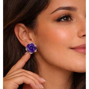 Brinco Rosa Roxa Strass Dourado Elegante Festa é perfeito para quem busca um acessório delicado com toque sofisticado. Seu design em formato de rosa na cor roxa traz charme e personalidade, enquanto o contorno com strass adiciona brilho e elegância na medida certa. Ideal para festas, eventos especiais ou até para elevar um look casual com estilo. Um acessório feminino versátil e também uma ótima opção de presente criativo e marcante.