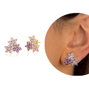 Brinco Flores Zircônia Tons Lavanda Semijoia Lizzy Fatin