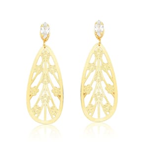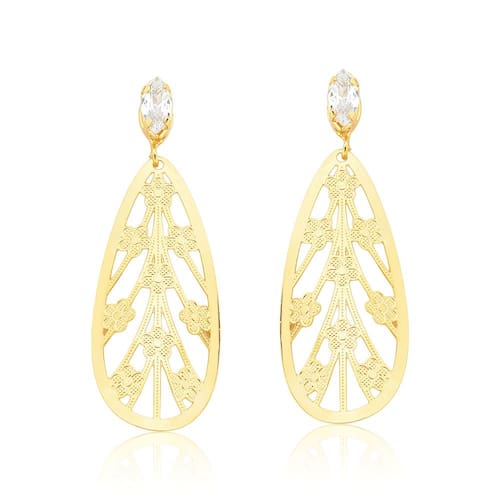 Este brinco possui design minimalista, textura nos frisos e formas de flores! De tamanho médio, peso leve e uma linda zircônia navete em sua base, este modelo é perfeito. Além da leveza, proporciona conforto e brilho sutil.
