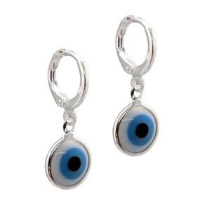 Brinco folheado a prata argola olho grego 10,5mm semijoias em caixa de luxo