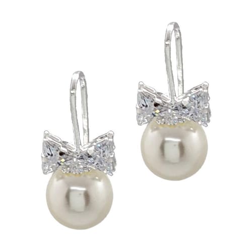 descrição do produto brinco banhado a prata laço de zircônia com pérola gancho