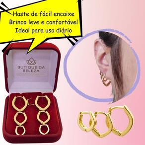 Brinco folheado a ouro argola 2 pares 3 furos semijoia luxo