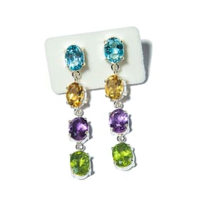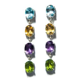 Brinco Gemas de Verão – Topázio, Citrino, Ametista e Peridoto em Prata 950 | Cores, Luz e Sofisticação Natural Celebre a energia e a beleza das estações com o Brinco Gemas de Verão em Prata 950, uma peça sofisticada que reúne o brilho e a leveza de pedras naturais como Topázio Azul, Citrino Dourado, Ametista Violeta e Peridoto Verde. Cada pedra representa uma vibração única, trazendo vida, cor e equilíbrio ao seu estilo. Destaques da Peça: