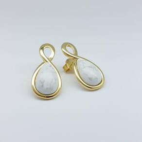 Brinco Gota Dourado com Pedra Natural Howlita Branca As peças Lizzy Fatin são Semijoias folheadas ou banhadas que possuem de 5 a 15 milésimos de material, fabricadas com a mais moderna tecnologia conferindo durabilidade com excelente qualidade e acabamento, com o visual que você espera e merece.