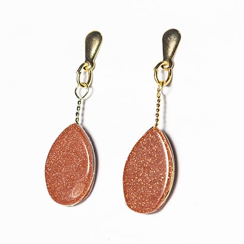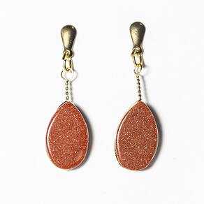 Brinco Pedra do Sol Lapidado Gota ranhurada e acabamento com pino e tarracha dourado, lapidação manual totalmente artesanal. A montagem em banho flash dourado