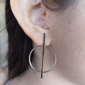O brinco é composto por um círculo e um fio no meio folheados em Ródio Branco, perfeito para você que gosta de estar elegante e pronta para qualquer compromisso que possa surgir em seu dia.