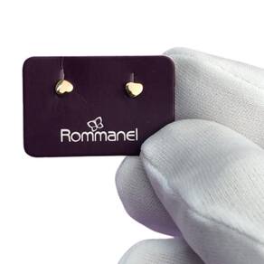 Brinco Infantil Rommanel coração pequeno folheado a ouro com tarracha baby Brinco formato coração liso segundo furo . Med. 0,2 cm Produto Rommanel. A Rommanel possui as melhores jóias folheadas do Brasil, as jóias não oxidam, não alteram a cor, não possuem níquel em sua composição e não dão alergias. As jóias Rommanel levam três banhos de ouro, com acabamento a ouro maciço. História Rommanel: Há mais de 30 anos a Rommanel oferece beleza e autoestima através de suas joias folheadas. Possui uma linha diversificada com mais de 3.000 modelos, onde o consumidor encontra joias para todos os momentos. A Rommanel está presente em todo Brasil, com mais de 250 lojas e muitas consultoras independentes e em mais de 20 países, incluindo EUA e Canadá. As joias folheadas a Ouro 18k, Rhodium, Rhodium Negro e Paládio, joias em Aço e Prata 925 são produzidas uma a uma com a qualidade, carinho e diferencial já reconhecido por muitas pessoas. Algumas instruções de uso conforme certificado de : - Evite contato das jóias com cremes, detergentes, protetores solares, sabonetes ou similares, pois seus resíduos podem deixar as pedras opacas ou leitosas; - Evite tomar banho de mar, piscina e/ou rios com as jóias; - Em qualquer procedimento estético, procure tirar jóias, evitando assim eventual contato com produtos químicos; - Evite lavar ouças ou fazer trabalhos manuais que possam gerar atrito com as jóias; - Para limpeza apropriada, dirija-se à distribuidora; - Apenas as jóias e aço aceitam gravação; - Não garantimos quebra, perda de pedras, arranhões, desgaste natural pelo uso, manchas por alguma das substâncias citadas acima, ou danos causados devido ações citadas nos itens anteriores. Sobre a : A Rommanel, visando a satisfação dos seus clientes, realiza a sem custos adicionais de peças exclusivamente com defeito de fabricação. A empresa não se responsabiliza por peças danificadas em decorrência de mau uso, como quebras, arranhões, perda de pedras, manchas por cremes, loções, desgaste natural pelo uso, medicamentos, pedras opacas devido ao acúmulo de resíduos, gravações, peças amassadas e peças sem a logomarca. Para que uma peça seja coberta pela , a mesma deverá ser encaminhada para análise no distribuidor/loja licenciado a exclusivo a , acompanhada do certificado de devidamente preenchido no ato da venda.