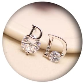 Brinco inicial letra d brilho strass detalhes prateado s8342