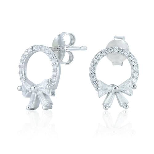 Brinco Laço 7Mm Com Zircônia Navete Em Prata