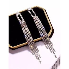 Brinco longo brilhante detalhe redondo strass h7685