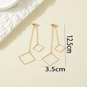 Brinco Longo Corrente Quadrado Feminino Dourado Elegante