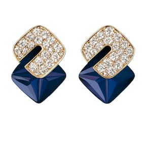 Brinco Geométrico Luxo – Azul com Zircônias 2x3cm