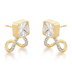 Brinco Luxuoso Zircônio Quadrada banhado a Ouro 18k -