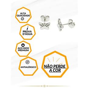 Brinco masculino feminino borboleta pequena 1º 2º 3º furo delicado minimalista prata aço inox Brinco masculino feminino borboleta pequena 1º 2º 3º furo delicado minimalista prata aço inox Brinco borboleta pequena é uma ótima opção para presentear um amigo ou namorado. brinco em aço inox, não descasca e não enferruja, podendo usar diariamente. Esse modelo pequeno pode ser no 1º 2º ou 3º furo. brinco masculino e feminino para furo de brinco comum - preço do par - excelente qualidade =================================================== Fotos reais do produto na galeria Modelo a prova d'água, podendo usar em piscinas e praias, não descasca, não escurece, não perde a cor Detalhes técnicos: Marca: visujóias Modelo: brinco borboleta pequena Incluso: 1 par = 2 unidades do brinco Material: aço inox Código do produto sku : 3491 : 6 meses. Todas as peças possuem tratamento antialérgico. =================================================== Marca: Não Informado Ean: 7732647220888