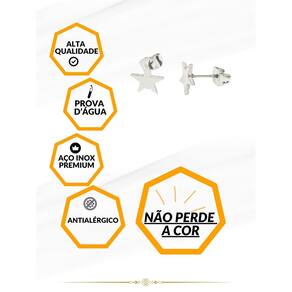 Brinco masculino feminino estrela pequena 1º 2º 3º furo delicado minimalista prata aço inox Brinco masculino feminino estrela pequena 1º 2º 3º furo delicado minimalista prata aço inox Brinco estrela pequena é uma ótima opção para presentear um amigo ou namorado. brinco em aço inox, não descasca e não enferruja, podendo usar diariamente. Esse modelo pequeno pode ser no 1º 2º ou 3º furo. brinco masculino e feminino para furo de brinco comum - preço do par - excelente qualidade =================================================== Fotos reais do produto na galeria Modelo a prova d'água, podendo usar em piscinas e praias, não descasca, não escurece, não perde a cor Detalhes técnicos: Marca: visujóias Modelo: brinco estrela pequena Incluso: 1 par = 2 unidades do brinco Material: aço inox Código do produto sku : 3490 : 6 meses. Todas as peças possuem tratamento antialérgico. =================================================== Marca: Não Informado