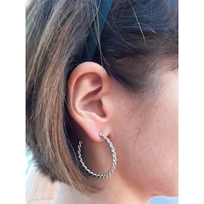Nesta coleção apresentamos essa meia argola banhada a ródio, trançada e lisa. Meia argola trançadas estão super em alta, pois combinam com diferentes looks, sendo despojado ou sofisticado, essa peça é excelente para qualquer ocasião. Apresentando um toque moderno essa argola é um charme.