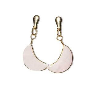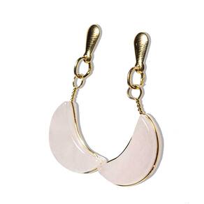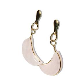 Nome da Pedra: Quartzo Rosa Cor: Rosa suave e delicado, que transmite harmonia e equilíbrio (foto ilustrativa). Lapidação: Formato navete em meia lua, com polimento artesanal. Claridade: Opaco, sem transparência. Medida das Pedras: 7 mm e 10 mm. Medida Total do Brinco: Aproximadamente 4 cm. Peso: Cerca de 2 g por lado. Material da Montagem: Metal niquelado em flash dourado. Origem: Produzido artesanalmente em Curvelo, Minas Gerais.