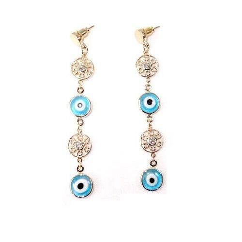 Brinco Feminino Olho Grego Dourado. Afaste Más Vibrações com o olho grego Além do design moderno e delicado que pode ser utilizado em várias ocasiões. ArraseDescrição do BrincoDimensões: A 7,7cm x C 1cmMaterial: Folheado a OuroPeso: 25gImagem Meramente IlustrativaAs Cores dos produtos poderão sofrer variações e não serem exatas, uma vez que dependem do monitor e tecnologia utilizada por cada usuário. Marca: Tulerry Semijoias E Acessórios