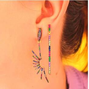 Joia maravilhosa e super por dentro das tendências da moda, composta por um design inovador, totalmente atraente. Brinco composto por uma barrinha é lindíssimo, ainda mais por ser toda cravejada de zircônias coloridas em sua extensão, tornando o acessório ainda mais lindo e requisitado Compõe um formato diferente e super tendência. Combine com brinco ear cuff cravejado de zircônias coloridas para realizar um mix encantador e super moderninho