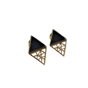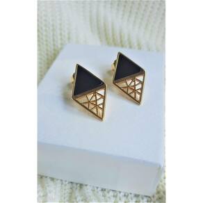 Brinco Pedra Agatha Preta Dourado Semijoia Lizzy Fatin
