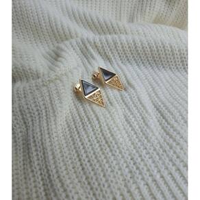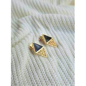 01 Par de Brincos Dourados com Pedra Agata Preta.