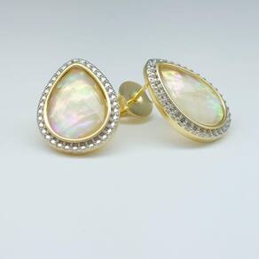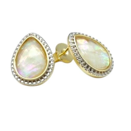 Brinco Pedra Concha Nautilus Dour E Ródio Branco Lizzy Fatin