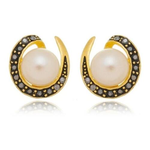 Brinco Pedra Hematita E Pérola Folheado A Ouro 18k Festa - Dourado Brinco Pedra Hematita E Pérola Folheado A Ouro 18k Festa - Dourado Marca: Não Informado