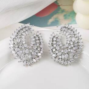 Brinco Pedra Zirconia Noiva Prata Redondo Grande Festa