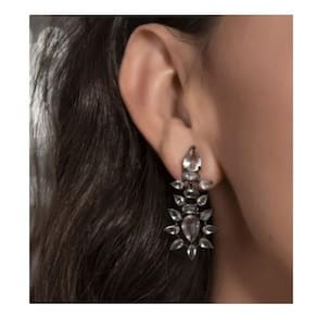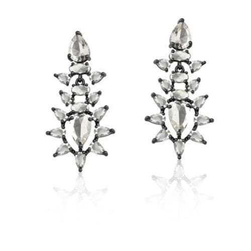 Brinco Pêndulo Cravejado Zircônias Na Cor Branca Banhado A Ródio Negro