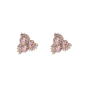 Brinco pequeno Armazem RR Bijoux triangular cristais rose dourado