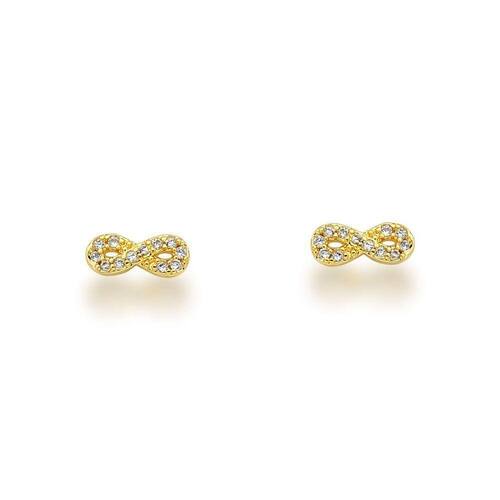 Brinco Pequeno Infinito Cravejado Banhado A Ouro18k Brinco pequeno Infinito cravejado Banhado a Ouro18k - Clássicos e elegantes, estes brincos pequenos são adornados com o símbolo do infinito cravejado com delicadas pedras, banhados em ouro 18 quilates. Seu design minimalista e sofisticado adiciona um toque de brilho sutil a qualquer look, sendo perfeitos para uso diário ou ocasiões especiais. O formato do infinito simboliza a eternidade e a continuidade, tornando estes brincos não apenas uma bela peça de joalheria, mas também portadores de significado e simbolismo.