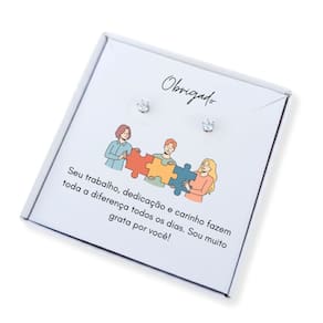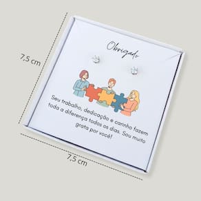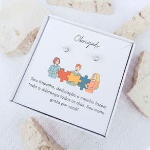 Brinco ponto de luz aço + caixa presente com frase funcionária